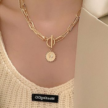 Fleepmart Trendy Gold Carved Portrait Coin Pendant Necklace For Women Punk Silver Color Multilayer Chain Choker Necklace 2022 Jewelry
