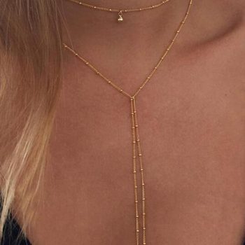 Fleepmart 2021 Simple Gold Silver Color Chain Choker Necklace Long Beads Tassel Chocker Necklaces For Women collar collier ras du cou