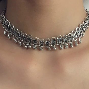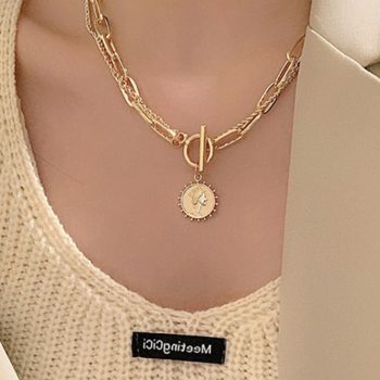 Fleepmart Vintage Carved Coin Thick Chain OT Buckle Necklace Bohemian Punk Metal Coin Collar Choker Necklace Fashion Women Punk Jewelry