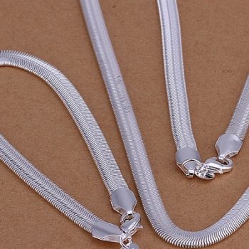 Fleepmart wholesale 925 Sterling silver necklace bracelets jewelry Set 6MM flat soft snake chain fashion Silver women Mens wedding