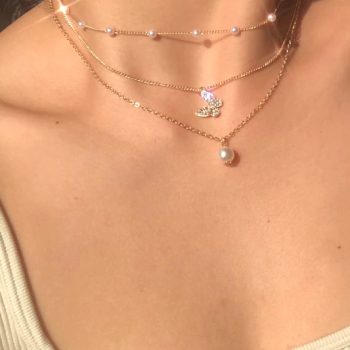 Fleepmart Fashion Butterfly Crystal Pearl Pendant Necklace Statement Clavicle Pearl Chain Layered Necklace Trend Butterfly Collar Jewelry