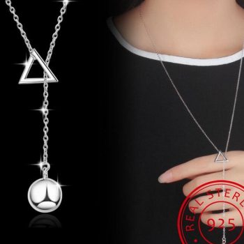 Fleepmart 925 Sterling Silver Jewelry Triangle Strip Long Chain Pendants&Necklaces For Women collares S-N50