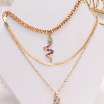 Fleepmart Vintage Crystal Animal Multilayer Necklace Female Bohemia Snake Chain Snake Pendant Collar Necklace Fashion Jewelry Party Gift