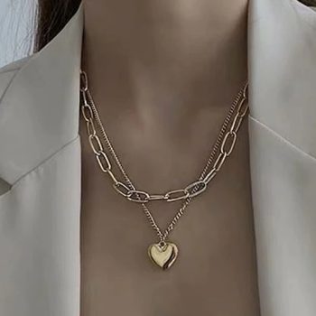 Fleepmart Lovely Heart Pendant Neckalce Charms Multilayer Thick Chain Choker Clavicle Gold Alloy Metal Jewelry Collar