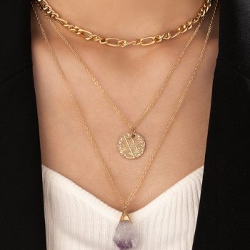 Fleepmart Bohemian Irregular Stone Pendant Necklace for Women Charms Gold Wafer Multilayer Thick Chain Choker Jewelry Collar