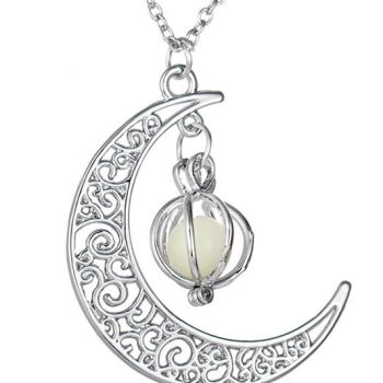 Fleepmart Fashion Women Glow In The Dark Pendant Necklaces Silver Plated Chain Long Night Moon Necklaces Jewelry Necklaces