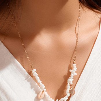 Fleepmart Bohemian Summer Shell Pendant Necklace for Women Charms Nutural Stone Sea Scallop Chain Jewelry Wholesale