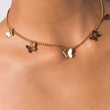 Fleepmart Short Punk Gold Silver Color Butterfly Chain Necklace Gothic Jewelry Pendant Women's Girl Gift New Fashion