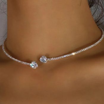 Fleepmart Fashion Rhinestone Heart Collar Choker Necklace for Women Simple Open Collar Necklace Torques Jewelry Accessories