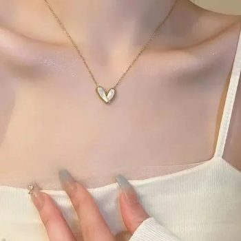Fleepmart Minimalist Jewelry Gold Plated Stainless Steel Classic Shell Heart Shaped Necklace Women Party Wedding