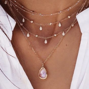 Fleepmart 2022 Fashion Gold Water Drop Crystal Opal Pendant Necklaces For Women Necklace New Multi Level Female Boho Vintage Jewelry Gift