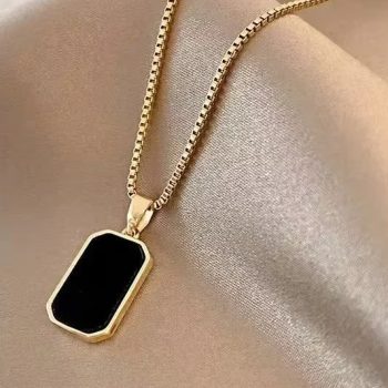 Fleepmart Square Necklace for Women Korean Black Geometric Pendant Necklace Collar Neck Gold Color Chain Charm Jewelry Party Gift