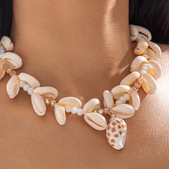 Fleepmart Bohemia Multicolour Bead Shell Pendant Necklace for Women Fashion Summer Adjustable Geometric Jewelry Holiday Beach Gift