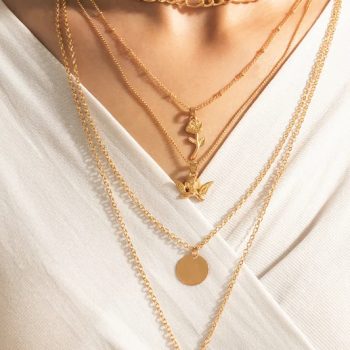 Fleepmart Bohemian Angel Rose Flowers Pendant Neckalce for Women New Multi-layer Chian Choker Alloy Metal Jewelry Collar