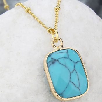 Fleepmart Turquoise Pendant Necklace 18K Gold Beaded Layering Chain Necklaces for Women