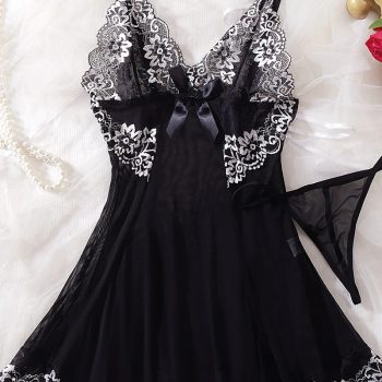 Fleepmart Transparent Underwire Bra Erotic Set Sexy Fairy Lingerie Women’s See Through Lace Nightdress Pajamas Sets Delicate Sexy Nighty