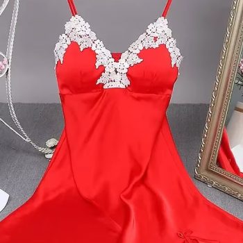 Fleepmart Satin Sexy Spaghetti Strap Night Dress Women Sleeveless Nightwear Comfortable Lace Hollow Out Nighties