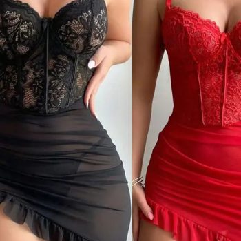 Fleepmart Transparent Red Sexy Lingerie Women’s Underwear See Through Sleepwear Lace Nightdress And Panty Pijamas Sets Female Sexy Nighty