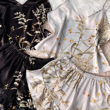 Fleepmart Women’s pajamas Summer loose thin nightdress slip shorts four-piece women’s loungewear