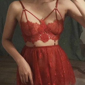 Fleepmart Transparent Underwire Bra Erotic Set Sexy Fairy Lingerie Women’s See Through Lace Nightdress Pajamas Sets Delicate Sexy Nighty