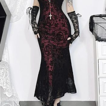 Fleepmart Vintage Elegant Goth Dress Women Sexy Streetwear Fairy Grunge Aesthetic Cross Pattern Spaghetti Strap Party Dress Female