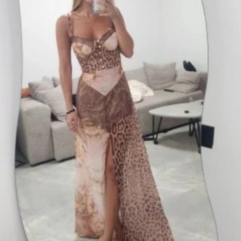 Fleepmart Leopard Print Lace Split Sexy Maxi Dress Women Gown Elegant Patchwork Chiffon Sleeveless Backless Beach Evening Dress