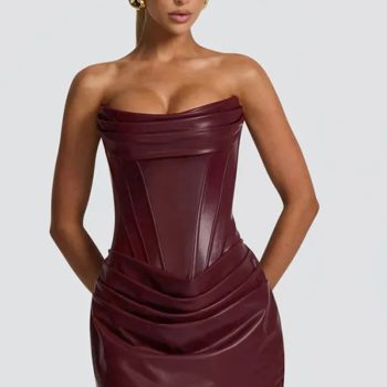 Fleepmart PU Leather Off-shoulder Strapless Sexy Mini Dress Women Gown Elegant Backless Sleeveless Ruched Club Party Dresses