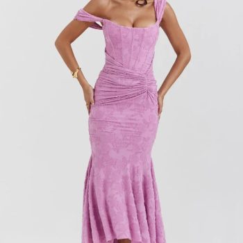 Fleepmart Off-shoulder Backless Sexy Evening Dress for Women 2025 Purple Sleeveless Strapless Ruched Bodycon Club Party Dress