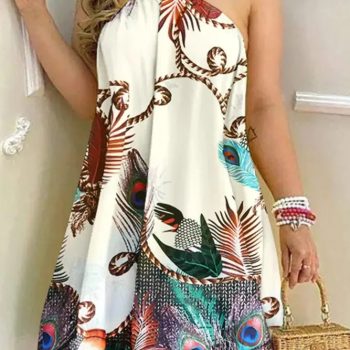 Fleepmart Tropical Print Halter Neck Dress, Vacation Style Backless Dress For Spring & Summer, Women’s Clothing