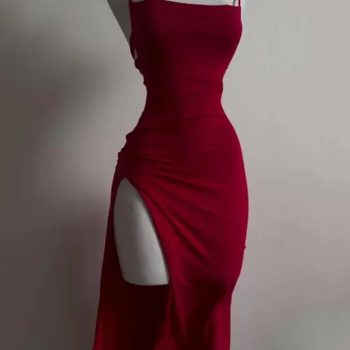 Fleepmart Summer Dresses For Women Sexy Spaghetti Strap Black Long Dress Y2k Sleeveless Solid Skinny Bodycon Trumpet Maxi Vestidos