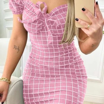 Fleepmart Summer dress sexy package buttocks short skirt of cross border grid print dress