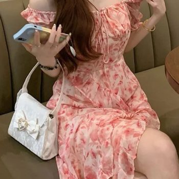 Fleepmart Floral Print Women Y2K Midi Dress Aesthetic Summer Beach Bodycon Sexy Street Evening Prom Chic And Elegant Woman Dress