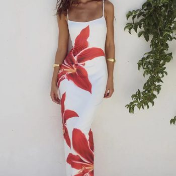 Fleepmart Floreal Print Long Dress For Women Gown Summer New Spaghetti Strap Sleeveless Backless Bodycon Sexy Midi Dress Elegant