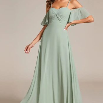 Fleepmart Elegant Evening Dresses Spaghetti Strap Sweetheart with Knot 2024 of Chiffon A-line Mint Green Bridesmaid Dress