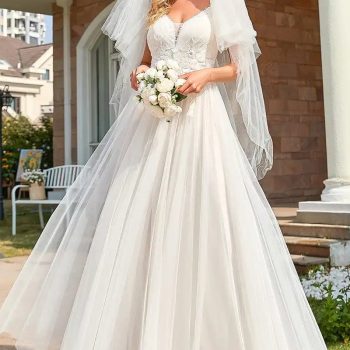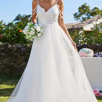 Fleepmart Elegant Wedding Dresses Deep V-neck Spaghetti Straps Sleeveless Floor Length 2024 of Embroidery White Dresses