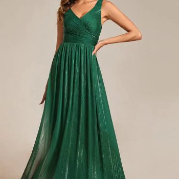 Fleepmart Elegant Evening Dresses Floor Length V-Neck Sleeveless Glitter 2024 of Sequin A-line Dark Green Bridesmaid Dress