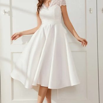 Fleepmart Elegant Evening Dresses V-neck Women’s Short Sleeves Knee-Length 2024 Lace A-line White Cocktail Dresses