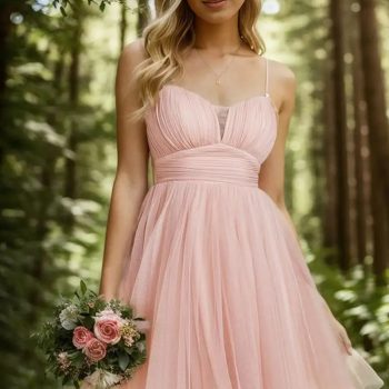 fleepmart Elegant Evening Dresses Spaghetti Straps Mesh Above Knee Mini Mesh 2024 Chiffon Pink Homecoming Prom Dress
