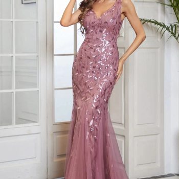 Fleepmart Elegant Evening Dresses Mermaid Sleeveless Double V-Neck Sequin 2024Sexy Fishtail Orchid Bridesmaid dresses