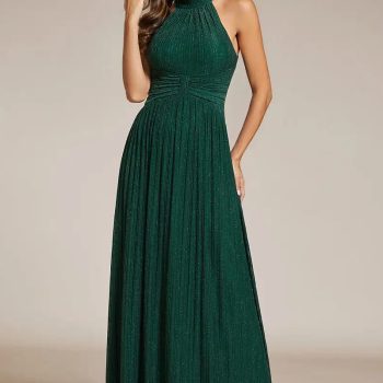 Fleepmart Elegant Evening Dresses Halter Neck Pleated Glittery Formal with Empire Waist 2024 Dark Green Bridesmaid Dress