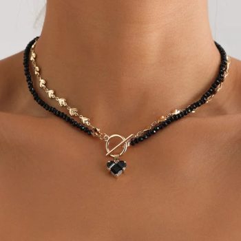 Fleepmart Fashion Unique Double Layer Chain Black Love Heart Neckaces Women Zircon Love Pendant Necklace Jewelry Party Gifts