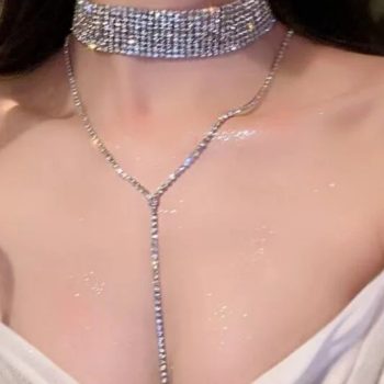 Fleepmart Temperament Sliver Shiny Zircon Tassel Collar Choker For Women Wedding Party Jewelry Gift Accessories
