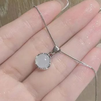 Fleepmart Fashion Silver Women Jewelry Clavicle Chain Plated White Round Moonstone PendantI Necklaces Daily Accessories
