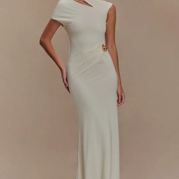 Fleepmart Hollow Out Gold Clasp Sexy Maxi Dress For Women Gown Solid Sleeveless Backless Ruched Bodycon Club Long Dress Elegant