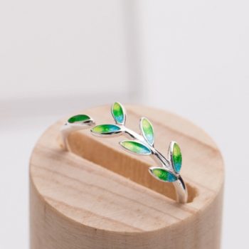 Fleepmart Green Leaf Handmade Creative 925 Sterling Silver Temperament Personality Fashion Female Trendy Resizable Opening Rings