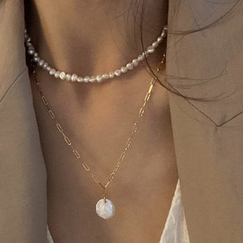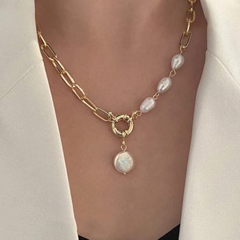 Fleepmart Vintage Irregular Pearl Jewelry Gold Plated Chunky Link Chain Layered Necklaces for Women Ladies Pearl Necklace