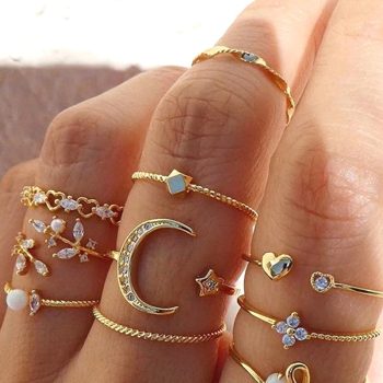 Fleepmart Bohemian Gold Chain Rings Set For Women Fashion Boho Coin Snake Moon Star Rings Party 2022 Female Trend Jewelry Gifts