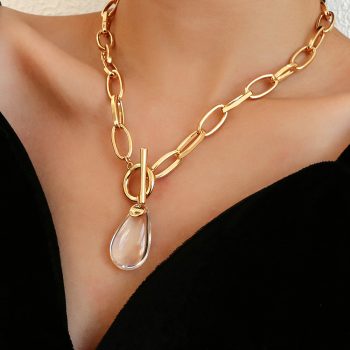 Fleepmart New Trendy Transparent Crystal Water Drop Pendant Necklace for Women Boho Gold Metal Chain Neck Necklace Party Jewelry