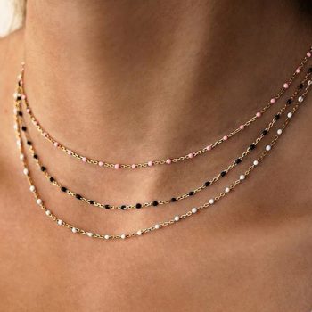 Fleepmart 2022 Hot Fashion Colorful Women Chain Necklace Stainless Steel Round Bead Link Choker Chain Necklace For Women
