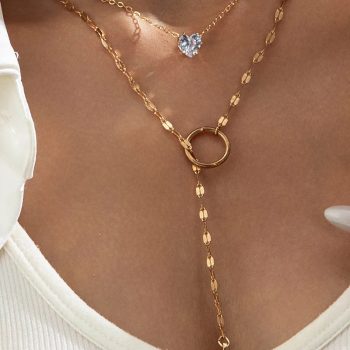 Fleepmart Minimalist Double layered Y-shaped Women Rhinestone Clavicle Necklace Popular Long Chain Pendant Necklace Holiday Gift